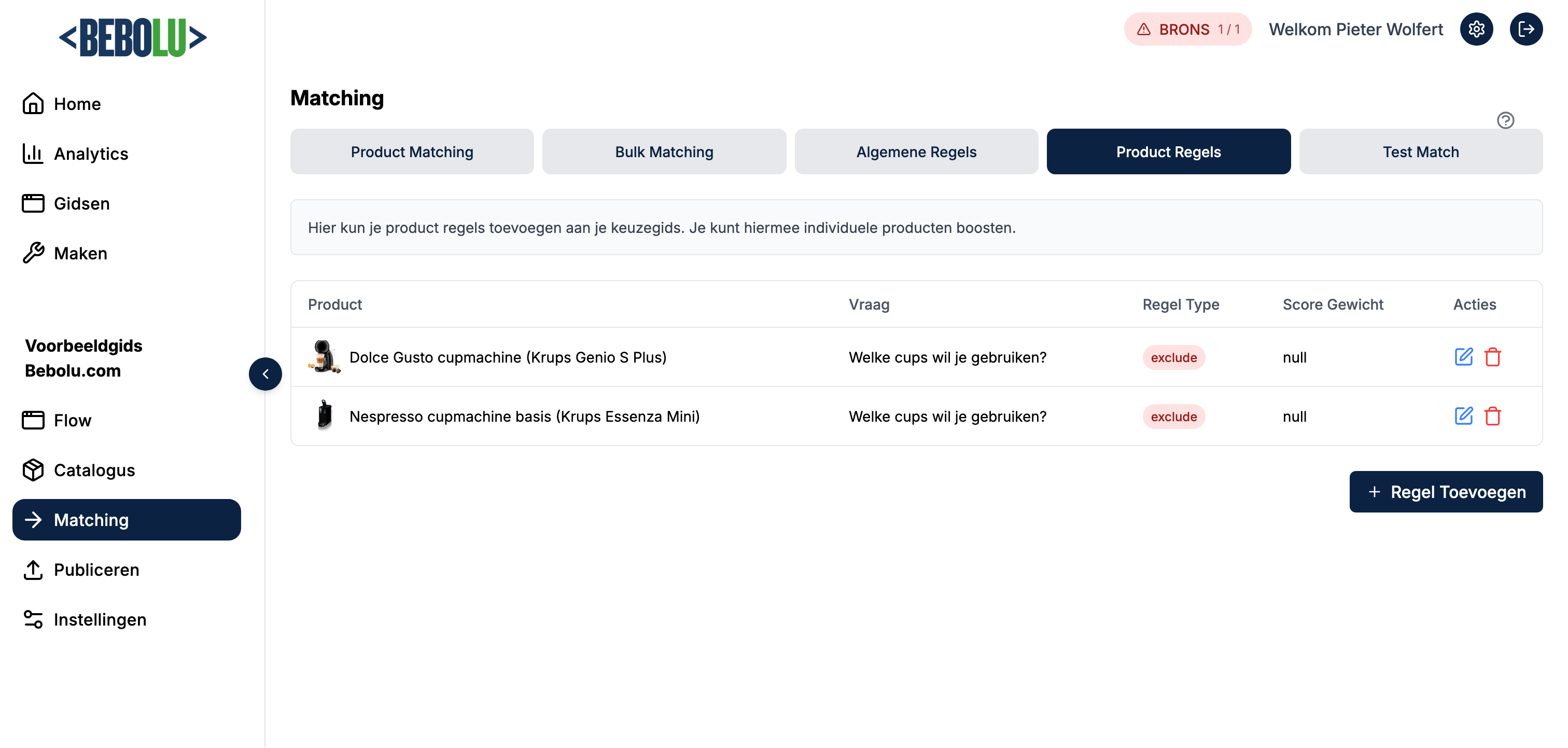 Je kunt ook individuele productregels instellen: je boost of sluit hiermee producten uit gegeven een bepaald antwoord. Bijvoorbeeld wanneer je om welke reden dan ook een bepaald product vaker wilt aanraden.
